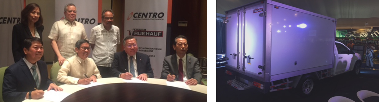 2018年10月24日、日本フルハーフ株式会社(本社:神奈川県 代表取締役社長:昼間弘康 以下「当社」)は、フィリピン共和国のM.Lopez貿易産業大臣の立会いの下、同国大手車両架装メーカーCentro Manufacturing Corporation(以下「Centro社」)とフィリピン国内に冷凍冷蔵ボディ生産会社(以下「JV」)の設立を検討する旨の覚書(MOU)を、マニラ市内にて調印したことをお知らせいたします。