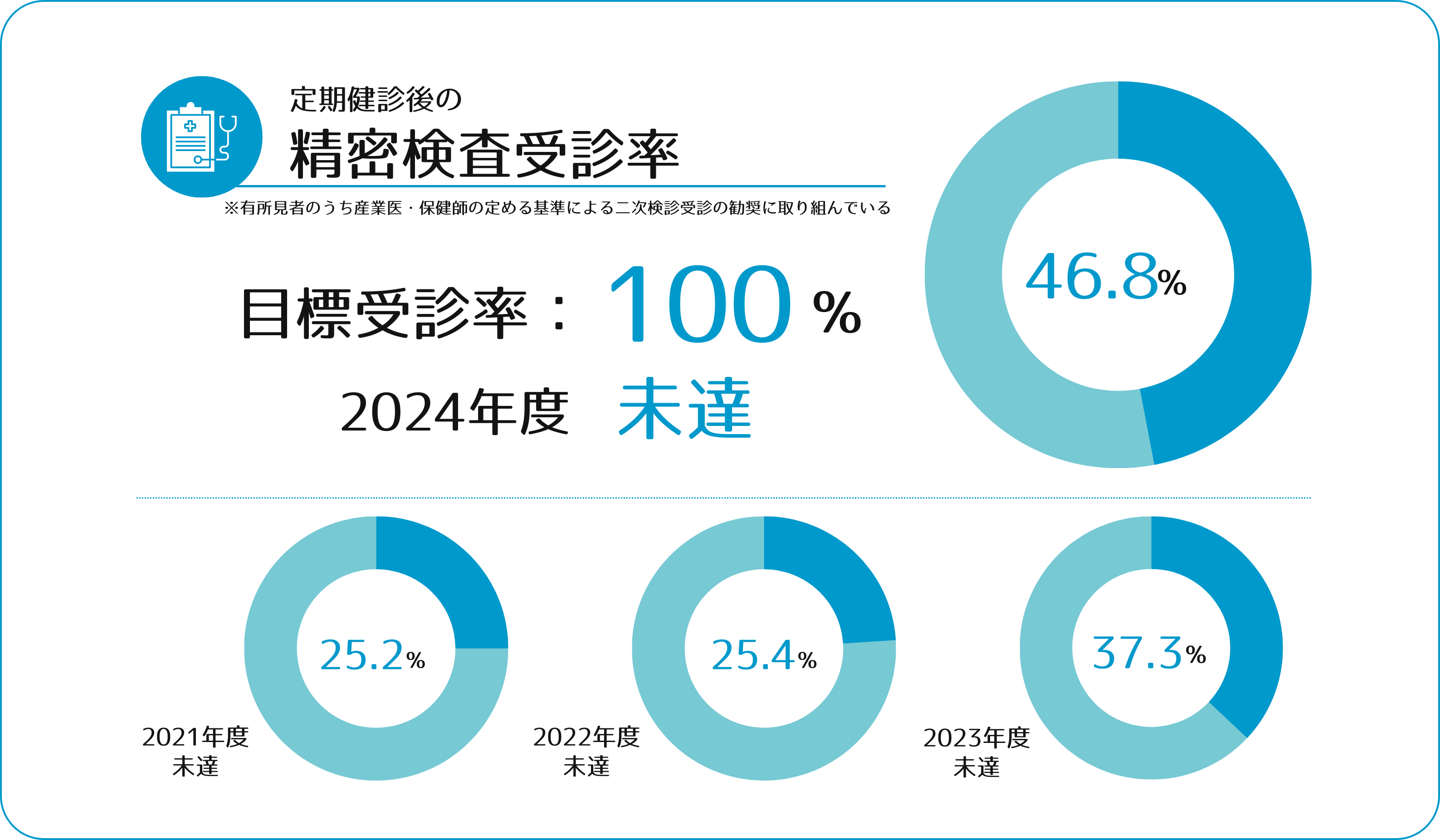 ・二次健診受診受診率:100% ⇒ 2024年度実績46.8%