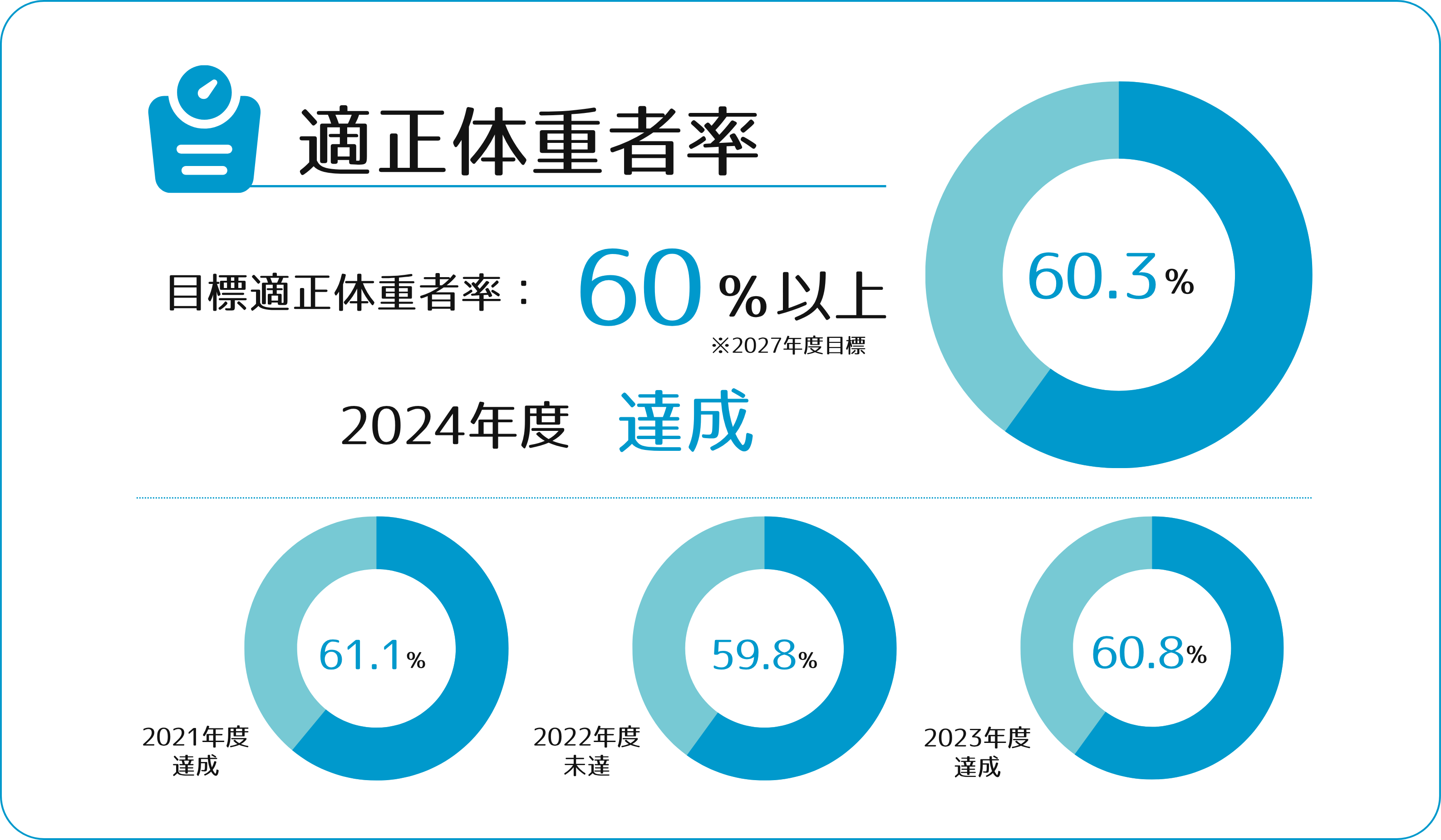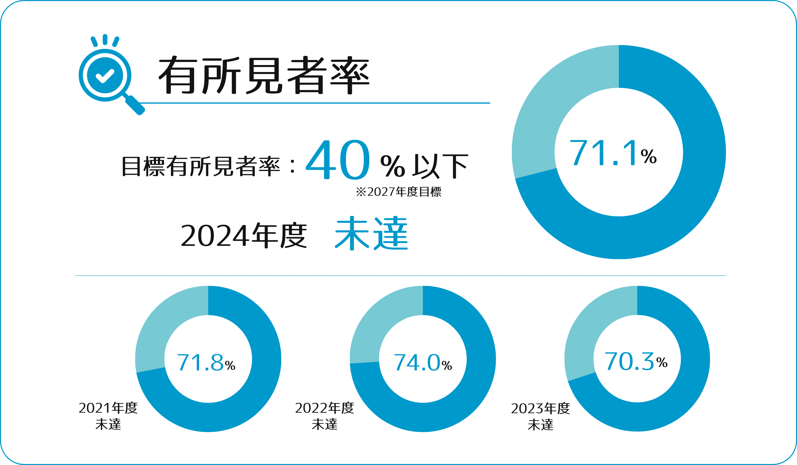 ・有所見者率:50%以下 ⇒ 2024年度実績71.1%